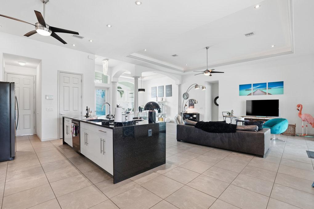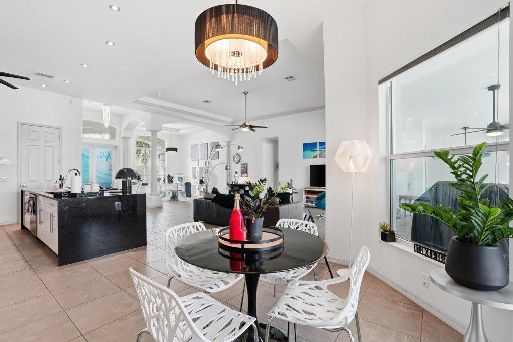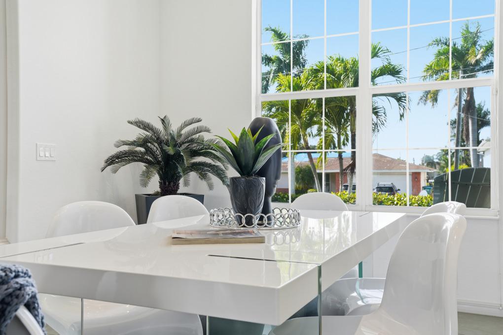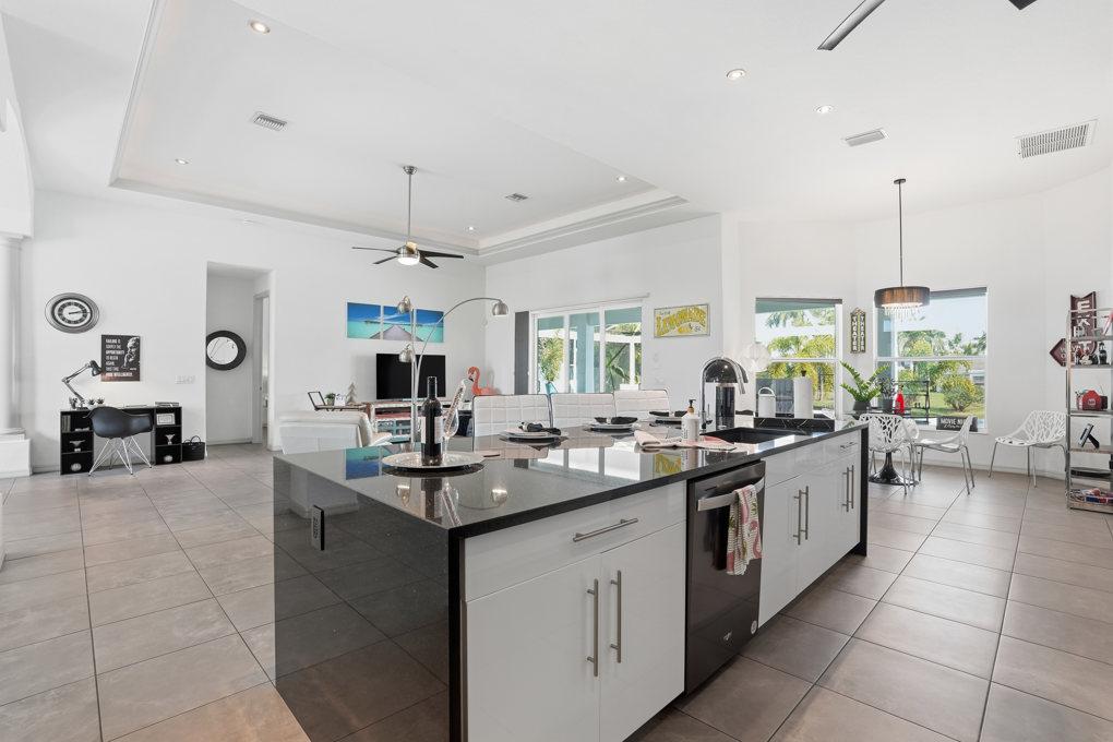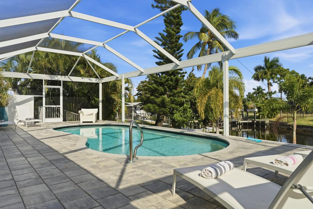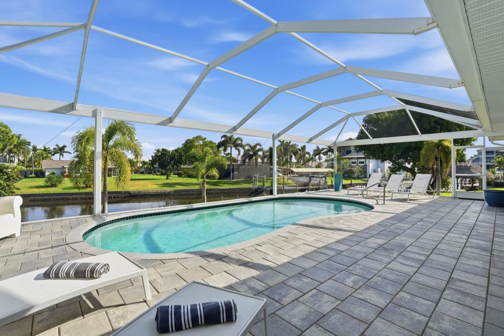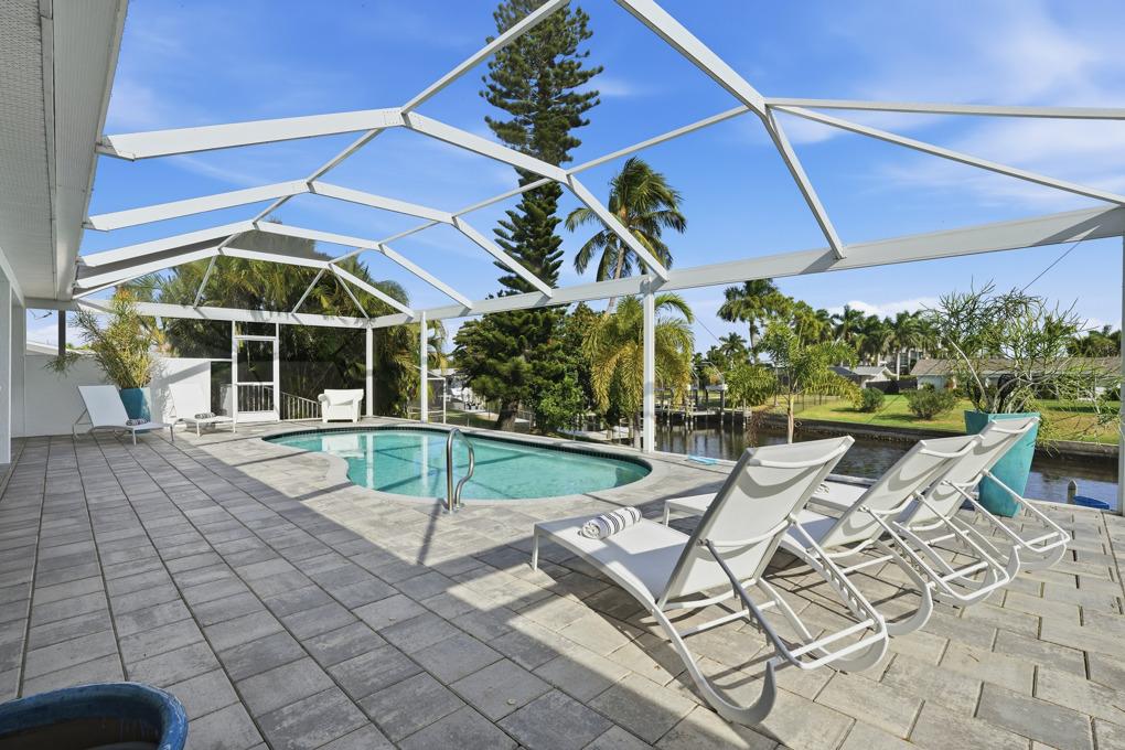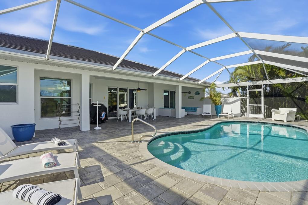This new spacious 3 bedroom home is located in the yacht club area only minutes away from the river. It has east exposure and you will have sun all day long on the pool. The home is very well equipped for all your vacation needs. The open American kitchen has granite counters, bar stools and a separate breakfast nook. Kitchen is loaded with high end products as Kitchen Aid and Nespresso. Dining table seats 6 persons. All 3 bedrooms (2 kings, 1 queen) are provided with TV and DVD player and have adjoining bathrooms. The master bath has a walking shower and a tub. The large, open living area leads to the pool area where you can enjoy yourself in the pool or enjoy a good book on one of the comfortable lounge chairs or sun tanning in the warm Florida sun. The pool is electric heated. There is a stainless steel BBQ. Pool bath. If you want to rent a boat you can use the dock to tie it up. For your convenience you have WIFI. Weekly rate is $ 1.900/4 persons. Additional person is $ 100/week. Plus $ 220 cleaning fee and 11.5 % taxes. Additional 20 % on Xmas/New Year and Easter time. Pets considered.