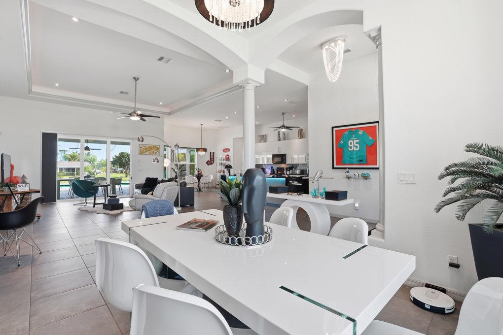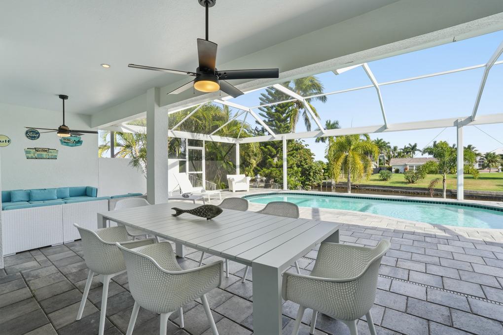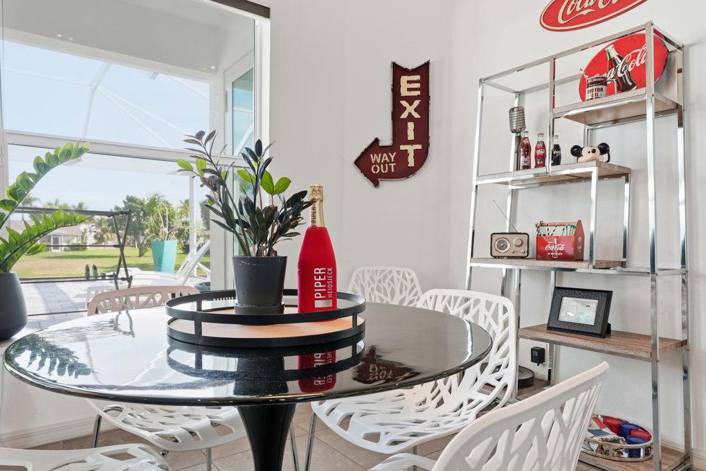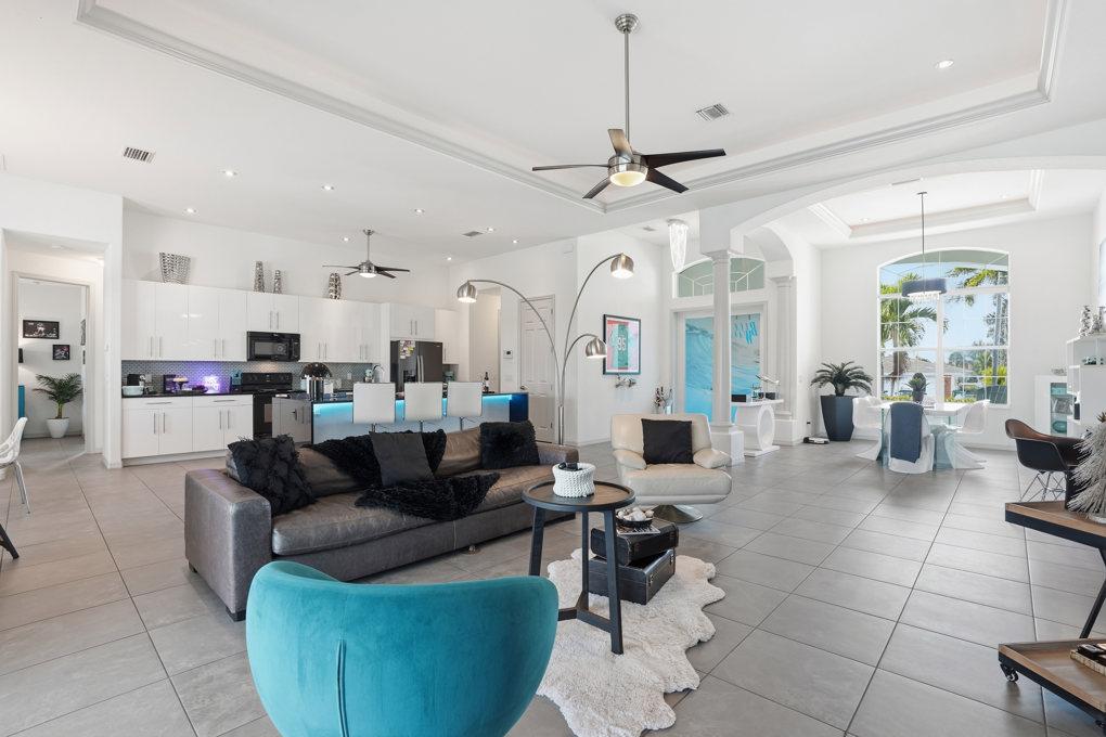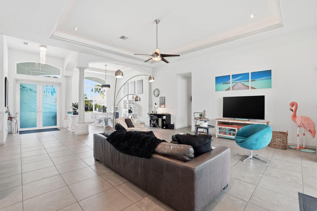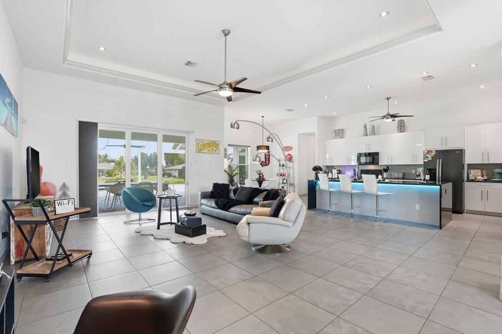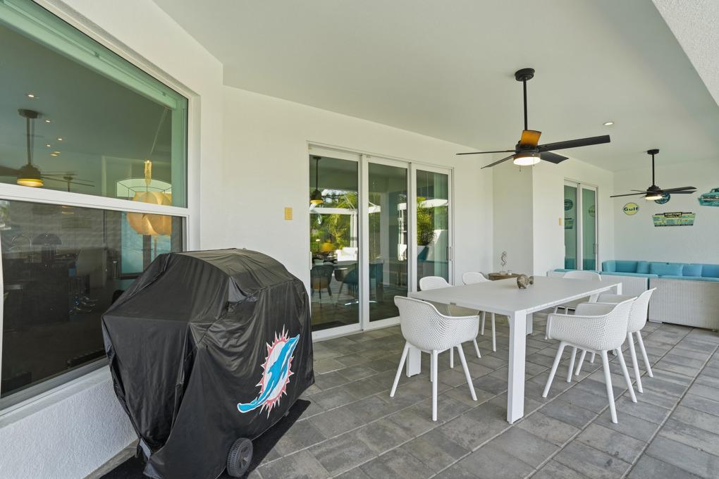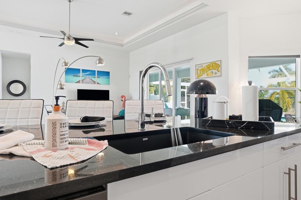 This new spacious 3 bedroom home is located in the yacht club area only minutes away from the river. It has east exposure and you will have sun all day long on the pool. The home is very well equipped for all your vacation needs. The open American kitchen has granite counters, bar stools and a separate breakfast nook. Kitchen is loaded with high end products as Kitchen Aid and Nespresso. Dining table seats 6 persons. All 3 bedrooms (2 kings, 1 queen) are provided with TV and DVD player and have adjoining bathrooms. The master bath has a walking shower and a tub. The large, open living area leads to the pool area where you can enjoy yourself in the pool or enjoy a good book on one of the comfortable lounge chairs or sun tanning in the warm Florida sun. The pool is electric heated. There is a stainless steel BBQ. Pool bath. If you want to rent a boat you can use the dock to tie it up. For your convenience you have WIFI. Weekly rate is $ 1.900/4 persons. Additional person is $ 100/week. Plus $ 220 cleaning fee and 11.5 % taxes. Additional 20 % on Xmas/New Year and Easter time. Pets considered.