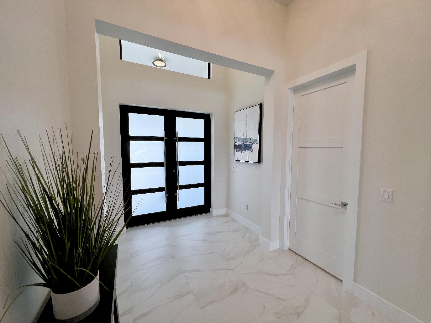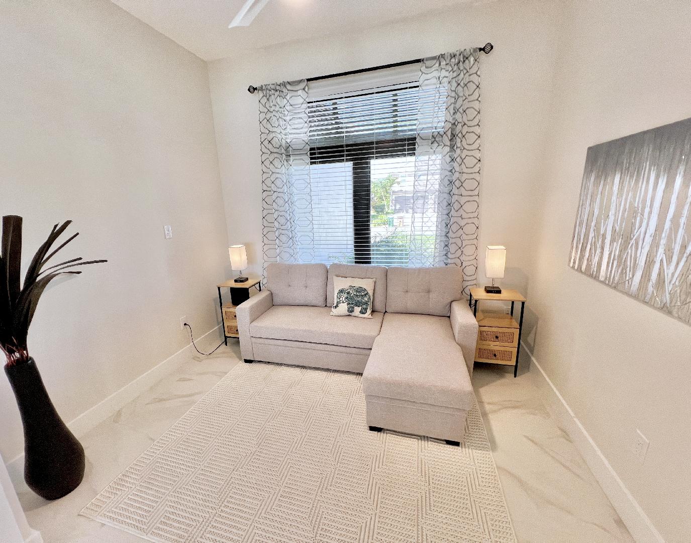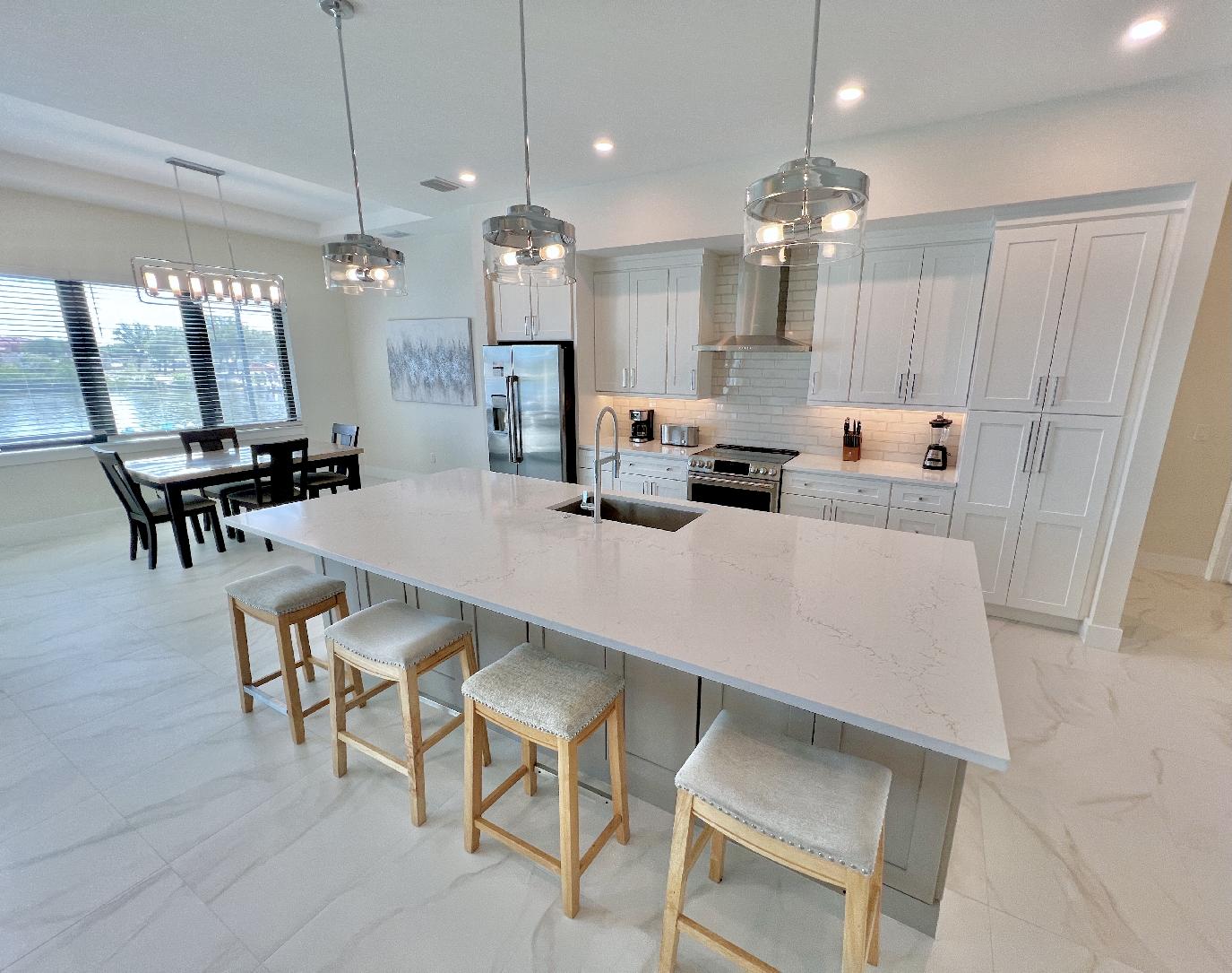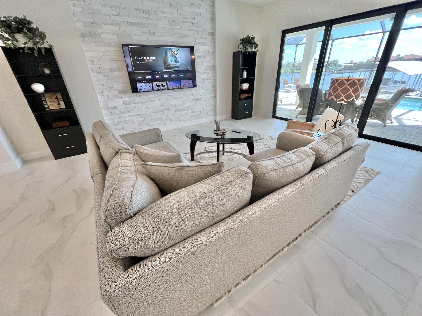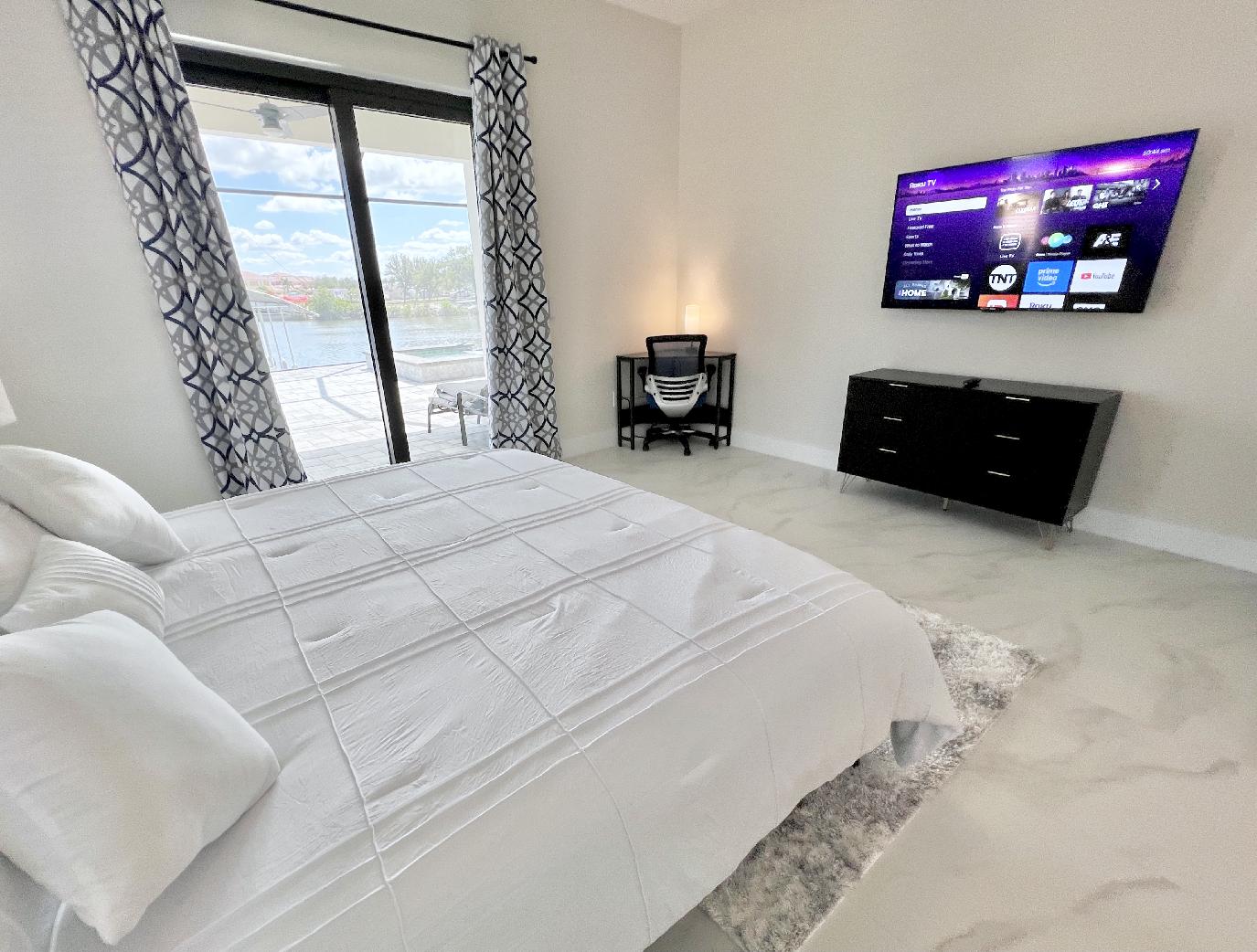 Villa Too Cool is a brand new modern, stylish home with a beautiful large pool deck and a large hot tub. This sparkling bright home impresses on every level! A modern home with many open spaces. As the sun rises Villa Too Cool is just an incredible example of modern architecture. From the spacious Chef's kitchen to the main bedroom suite, no box is left unchecked. Two additional and well appointed guest bedrooms (1 king, 1 queen and 2 twins) with three bathrooms round out the experience. There is also a full size sleeper sofa available for your convenience. The outdoors is where the fun is! A large pool deck with pool and hot tub faces west and features an electric heater - it will be everyone's first choice. Step down to the boat dock that encompasses the full water frontage! The house is is pet friendly (with approval). Cats are not permissible. All bedrooms have TV - Roku TV service. Additional cleaning fee of $ 240 and on top 11.5 % taxes. Ask for summer special rates.