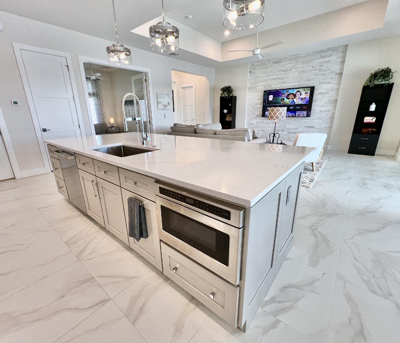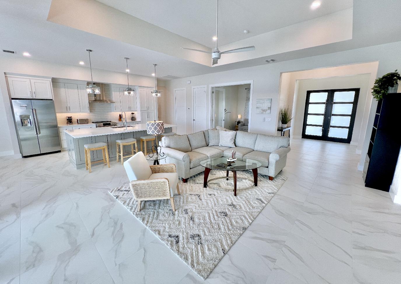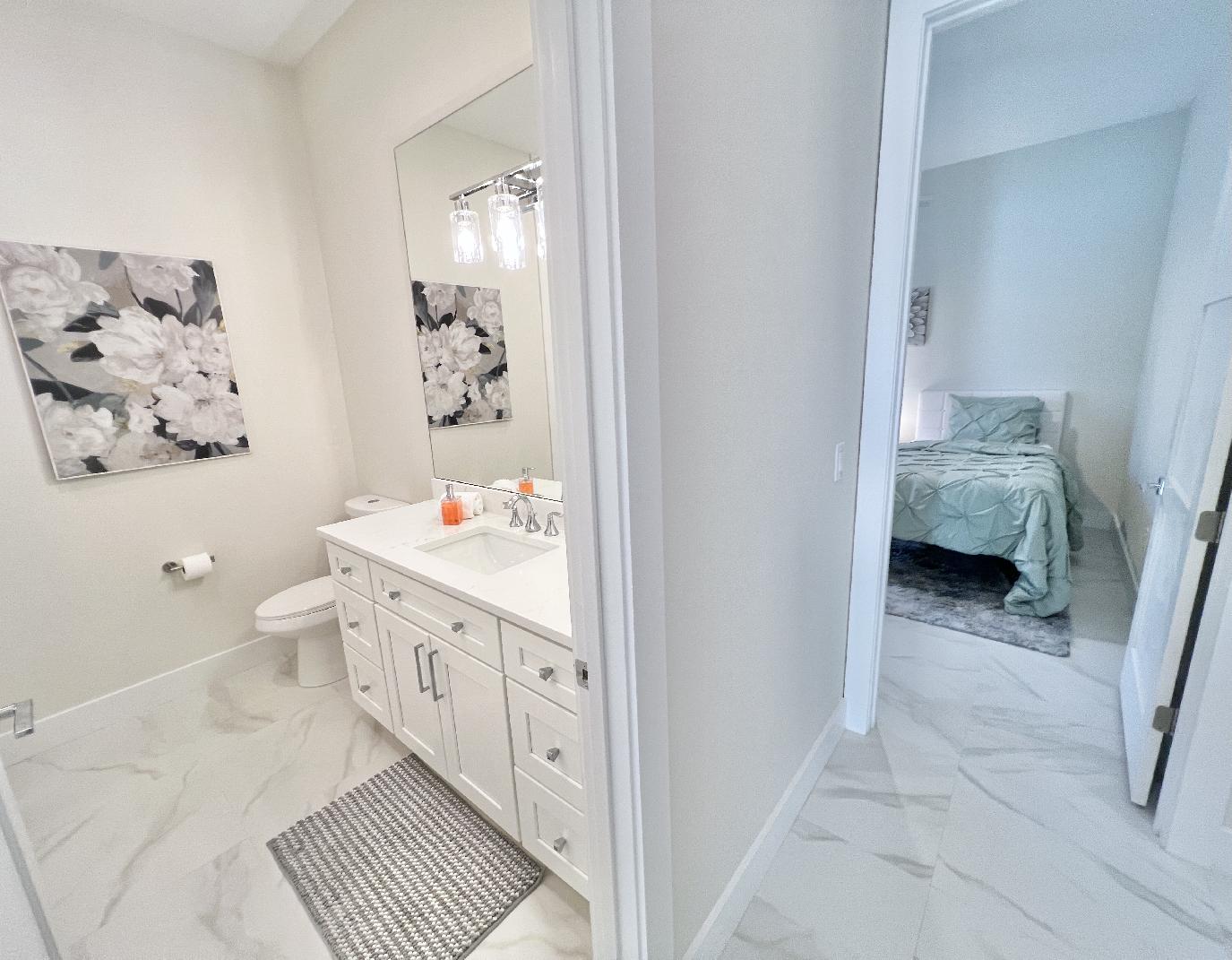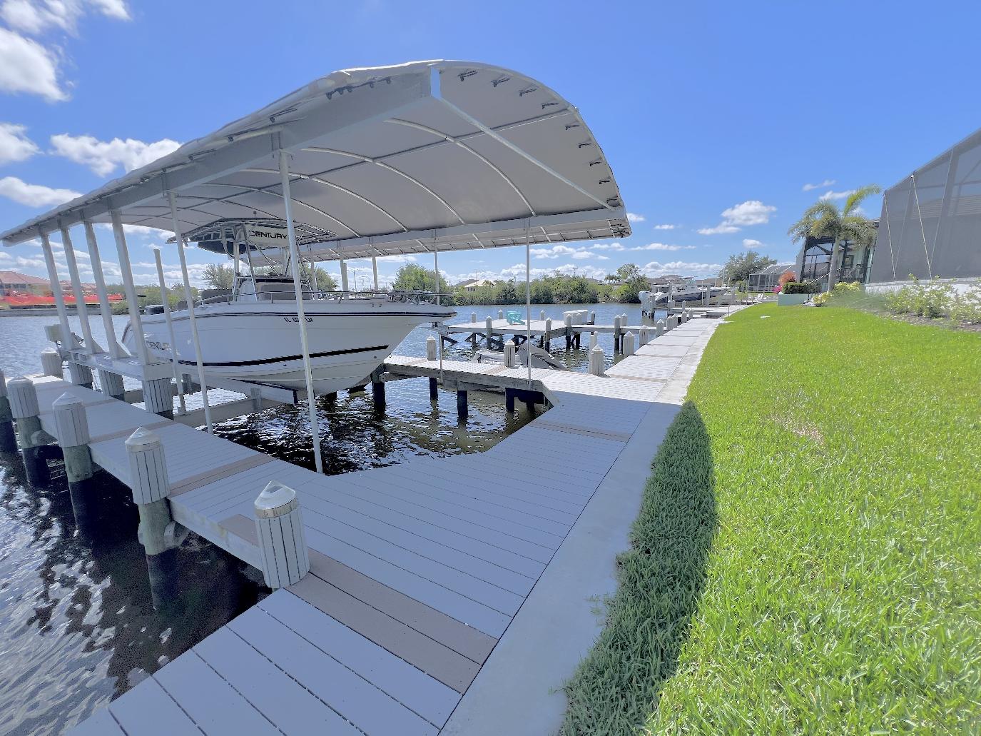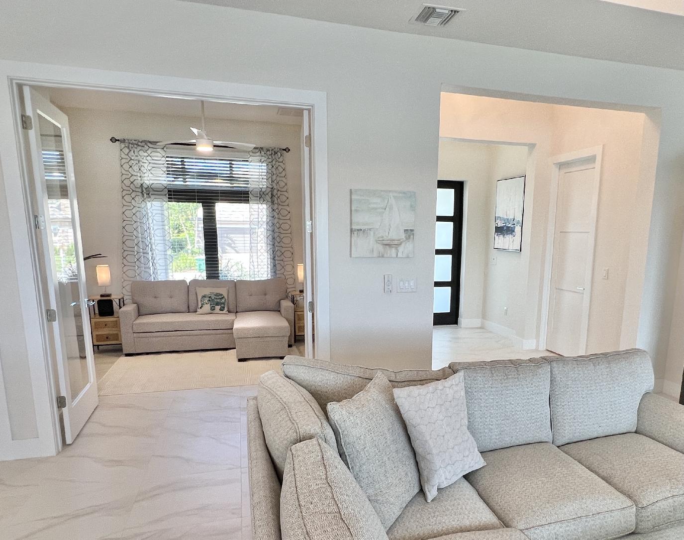 Villa Too Cool is a brand new modern, stylish home with a beautiful large pool deck and a large hot tub. This sparkling bright home impresses on every level! A modern home with many open spaces. As the sun rises Villa Too Cool is just an incredible example of modern architecture. From the spacious Chef's kitchen to the main bedroom suite, no box is left unchecked. Two additional and well appointed guest bedrooms (1 king, 1 queen and 2 twins) with three bathrooms round out the experience. There is also a full size sleeper sofa available for your convenience. The outdoors is where the fun is! A large pool deck with pool and hot tub faces west and features an electric heater - it will be everyone's first choice. Step down to the boat dock that encompasses the full water frontage! The house is is pet friendly (with approval). Cats are not permissible. All bedrooms have TV - Roku TV service. Additional cleaning fee of $ 240 and on top 11.5 % taxes. Ask for summer special rates.