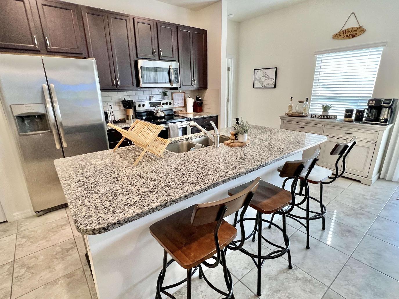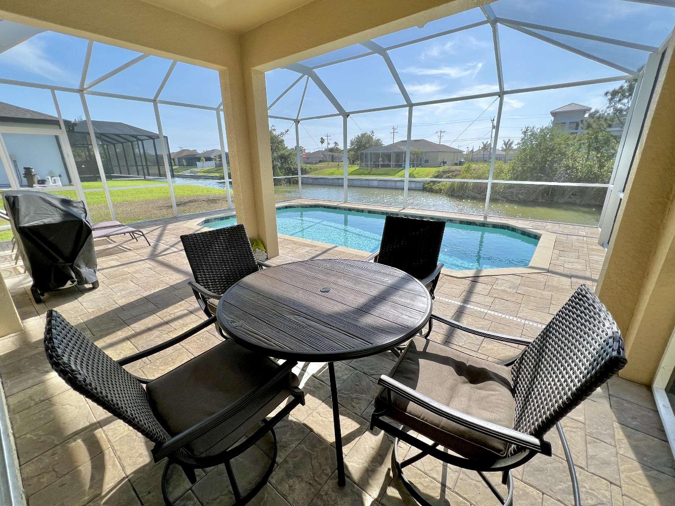 Villa Whispering Palms is a lovely and newly furnished home. Approximately 1,700 sq ft of roomy air conditioned living space. The open American kitchen is well equipped. Dining table seats 4 persons. The master bedroom with King size bed has an adjoining bath. Second bedroom with queen size bed and and third bedroom with queen size bed. All bedrooms have TV. Electrically heated pretty west facing pool for those evening sunsets and with patio furniture and gas barbecue. The entire property is fenced and the house is pet friendly. Non refundable pet fee is $ 200. The weekly rate is from Dec 19 - April 23 $ 1,500 from April 24 - December 18 $ 1,200. PLus $ 200 cleaning fee and 11.5 % taxes.